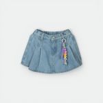 La Pollera Pantalón Oli lo tiene todo: la estética femenina de una falda con la practicidad de un short. Confeccionada en denim su estructura cómoda la convierte en una prenda versátil. El frente presenta un diseño tipo falda con tablas marcadas, mientras que el dorso revela su funcionalidad: un short con bolsillos traseros aplicados. Uno de ellos lleva el clásico bordado “ch”, y el otro, un parche de estrella bordado, detalles que siempre suman. La cintura tiene elástico en la parte trasera para mayor ajuste, y presillas